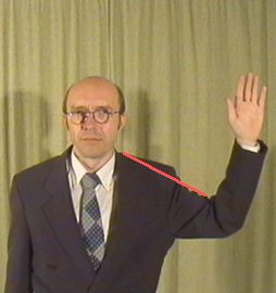 So sieht es ja noch gut aus: stattliche, breite Schultern... 2. Aber kaum hebt man einen Arm, wird das Polster auf der Schulter ganz offensichtlich. Deutlich wird sichtbar, wieviel von der "Stattlichkeit" nur Luft und purer Schwindel ist... 3. Und wenn man beide Arme hebt, sieht man glatt so aus wie der Glöckner von Notre-Dame! | ||